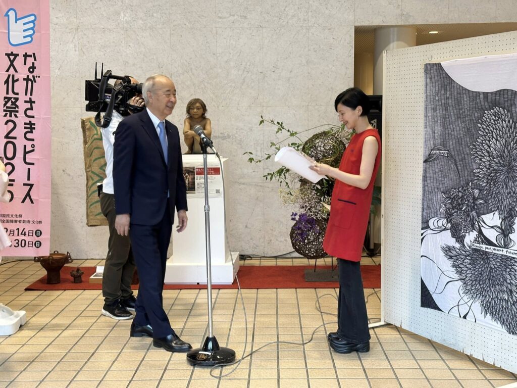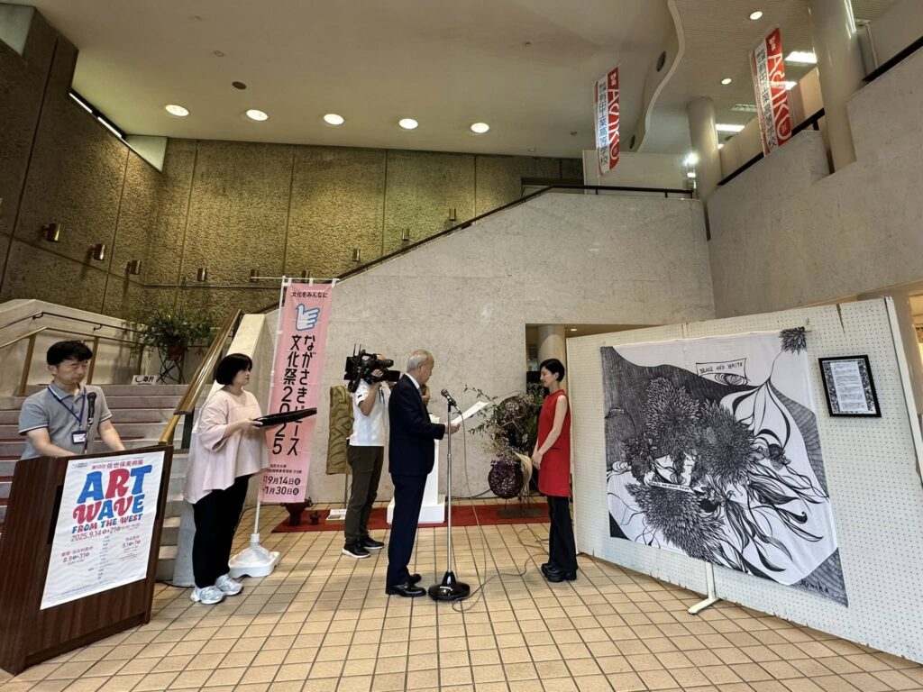 お知らせ 【祝!】第58回佐世保美術展 ART WAVE FROM THE WEST オーディエンス賞表彰式を行ないました! 2025年9月28日2025年9月28日 「オーディエンス賞」表彰式 本日9月27日(土)、「佐世保美術展 ART WAVE FROM THE WEST」にて、来館者のみなさまからの投票で決定したオーディエンス賞の表彰式を行いました。 多くのお客様に見守られるなか、当財団永元太郎理事長より表彰状が授与されました。Momoka.さんの作品《華》は、奨励賞との ダブル受賞 となりました。本当におめでとうございます そして、ご投票くださったみなさまにも心より感謝申し上げますテレビ佐世保さんもご取材ありがとうございました 詳しくはこちら https://shimabi.com/news/news_11718/ #しまび #佐世保市博物館島瀬美術センター #佐世保市 #佐世保美術展 #オーディエンス賞