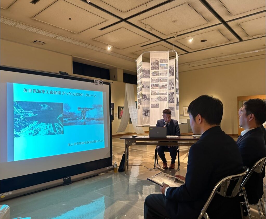 しまび日記 【平和って大事だね】九州防衛局の杉田室長のトークイベントが行なわれました! 2025年11月10日2025年11月10日 11月8日(土)14:00から1時間にわたり、「させぼピース展」関連イベント、防衛省九州防衛局杉田室長によるトークイベント「平和を守るために〜我が国を取り巻く安全保障環境と防衛省の取り組みについて〜」を行いました。 佐世保に関わる歴史を織りまぜつつ、杉田室長からは平和を守るための防衛省の取り組みについてわかりやすくお話いただきました。会場から質問をいただくなど、熱心に聴いていただきました。九州防衛局のみなさま、お集まりいただいた参加者のみなさま、ありがとうございました。