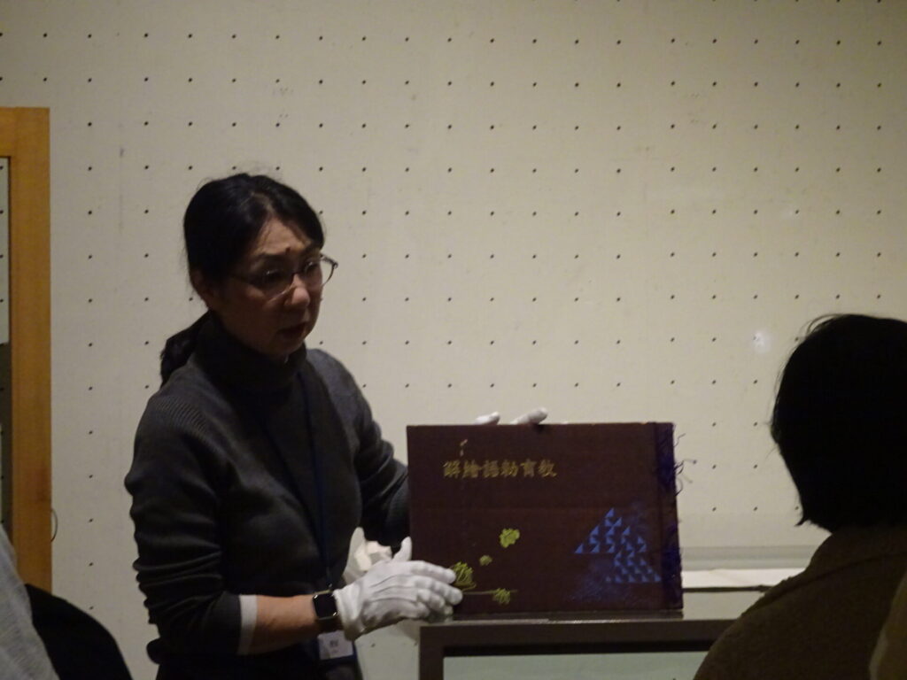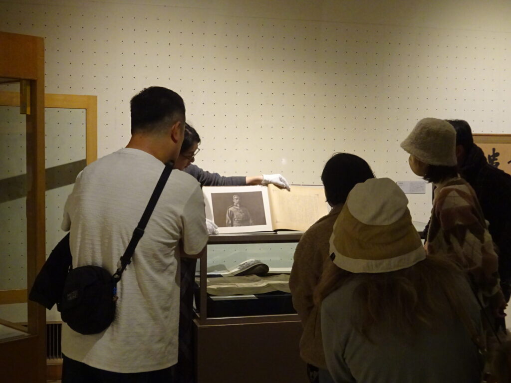 今回は特別に、参加者限定で、展示ケースの鍵を開け、『教育勅語絵解』や『大東亜戦史レコード』の資料を間近でご覧いただく貴重な機会を設けました。ご参加の皆さまにとって、忘れがたい体験となったことと思います。
