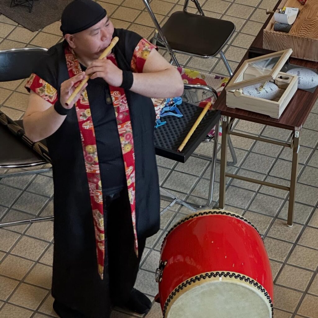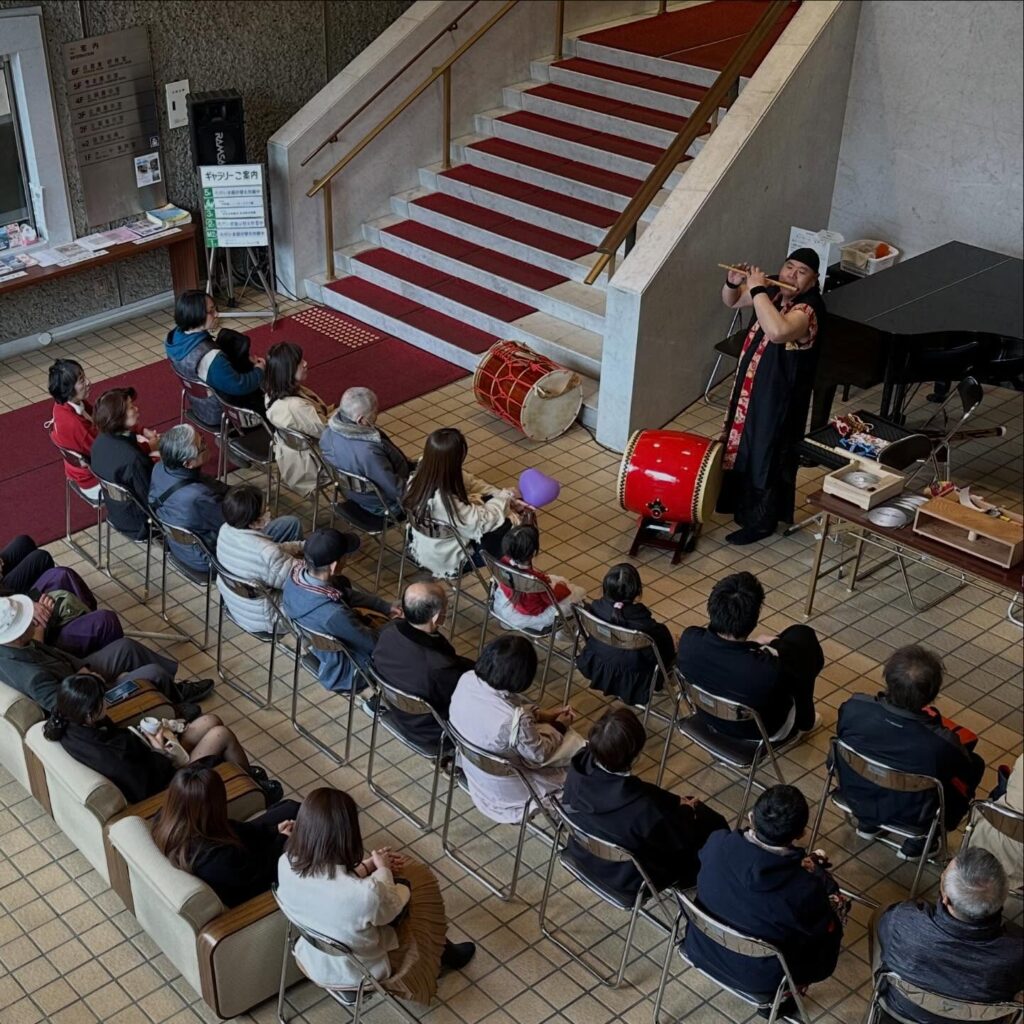 続いて、太鼓奏者の髙倉照一さんが特別出演。「ながさきピース文化祭2025」にて天皇皇后両陛下の御前で演奏を披露された髙倉さんの登場に、会場の期待が高まります。静かな立ち上がりから一転、ダイナミックな響きが空間を震わせると、客席からは大きな拍手が沸き起こりました。