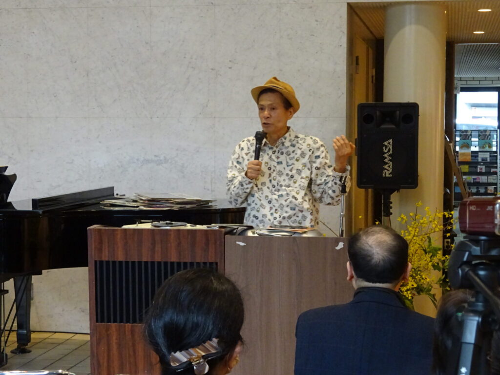 野島さんは、本日集まられたお客様にアメリカ北部南部の音楽性の違い、1965年代に流行っていたエレキ、サーファーミュージックなどを基に当時の音楽を聴いて感じたことを解説なさいました。お客様は野島さんの解説に笑みを浮かべたり、うなずいたりと反応され終始楽しんでいらっしゃいました。