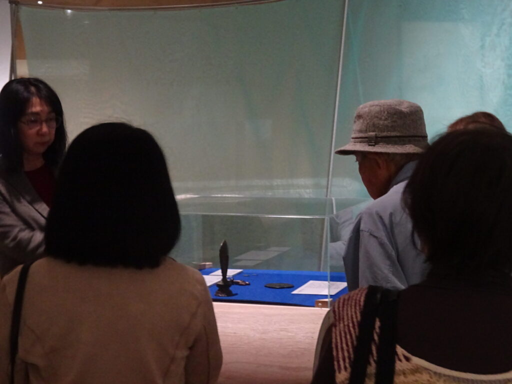 11月16日(土)14時に佐世保市博物館島瀬美術センター安田館長によるギャラリートークが行われました。安田館長は5階から来館者に作品解説をなさいました。今回の展示は、佐世保の旧石器時代から現代に至るまでの展示で、縄文時代には土器に模様をつけることができるぐらい心の余裕があり、多少、諍いがあったものの10,000年以上続いたことから比較的、平和な時代だと考えられる、旧石器時代、南方系の特徴を示すとも言われている港川人などが発見された、沖縄には日本列島の集団に特徴的な遺伝系統が比較的高頻度で見られる、佐世保には明治は寒村だったが、政府が勅令として公布した佐世保に鎮守府ができて近代化を遂げていったとさまざまな解説がありました。次回のギャラリートークは11月23日(日)14:00からを予定しております。